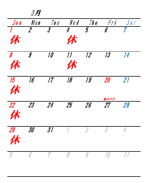3月のお休みについて